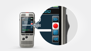Due microfoni offrono un'eccellente qualità del suono per i tuoi dettati.Il design robusto ma leggero in acciaio inossidabile offre un'ergonomia perfetta per lavorare per lunghi periodi di tempo.Le funzioni di risparmio energetico e una batteria agli ioni di litio ad alta capacità consentono tempi di registrazione prolungati e una facile ricarica tramite una connessione USB standard.