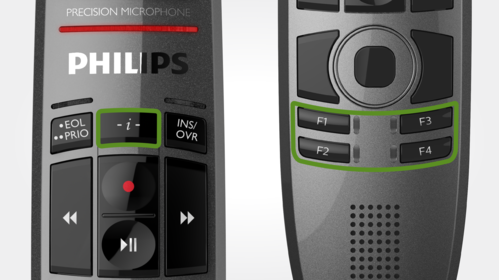 Philips SpeechMike Premium ha un sensore di movimento integrato.Rileva quando viene posizionato sul tavolo e disattiva il microfono.Non appena lo raccogli di nuovo, il microfono verrà nuovamente attivato.Inoltre, è possibile programmare eventi definiti dall'utente, al verificarsi dei quali il dispositivo mette in pausa e riprende la registrazione.